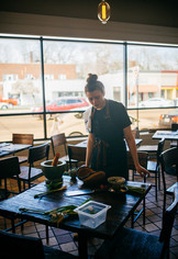 When we met chef/owner of Harbinger restaurant, Joe Tripp, for the first time, it was behind the line running the kitchen for Alba. It wasn't until the 5th course that we had a chance to thank him for the amazing food, service, and hospitality. He was down to earth, brutally honest, and presented a callused wisdom beyond his years. It was a pleasure and even more so after receiving a call two years later from him wondering if we may be interested in helping him develop a logo for a new veggie focused concept he had inspired by his trips to SE Asia. Our response? Why stop at just doing a logo? Why don't you just let us buildout all of your customer facing branding? The rest is history painted on the brick wall.